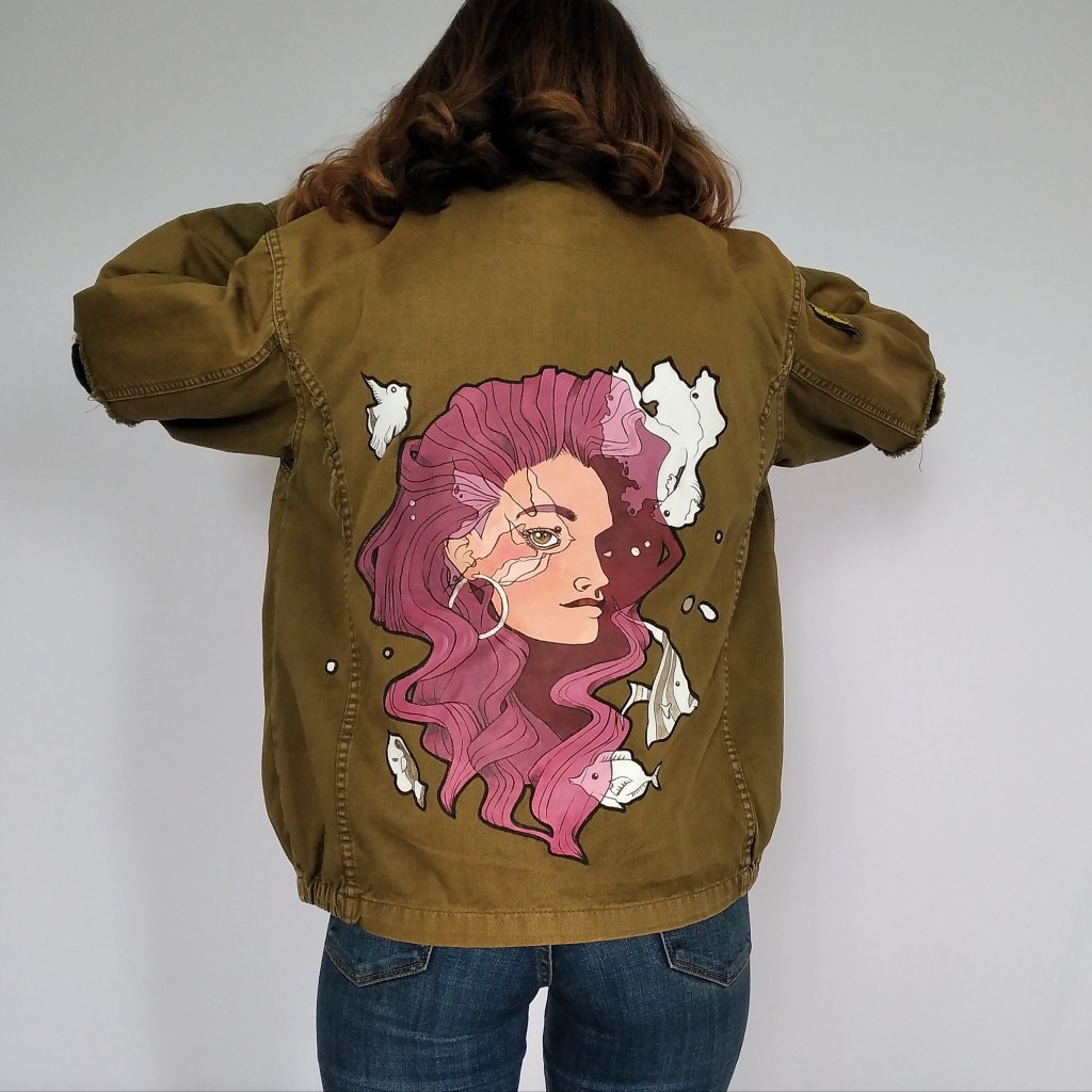 Sobre todo pinto en combinacion al dibujo. Creo paisajes, retratos, murales e incluso pinto en ropa y otros objetos.